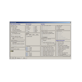 Calculates heliocentric, geocentric, and topocentric positions of the Sun (Earth), planets, 18 natural satellites, minor planets, comets and fixed stars in ecliptical, equatorial, and horizontal coordinates (including angular differences between two bodies), with optional corrections for parallax and refraction; rectangular coordinates, velocity, apparent diameter, magnitude, phase, lunar libration, and orbital elements, covering the period 3000 BC to AD 3000.