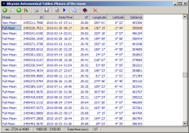 - instant of lunar phase as a Julian day number and as a Julian/Gregorian calendar date
