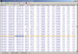 - geocentric ecliptical longitude and latitudes of the planets at the time of conjunction